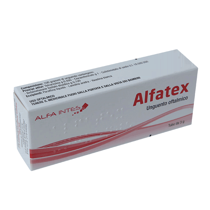 Глазные капли Альфатекс (старое имя: Эубетал Антибиотико) оказывают комбинированное действие. В состав капель входят глюкокортикостероид (бетаметазона динатрия фосфа) и антибиотики хлорамфеникол, тетрациклин и колистиметат натрия. Препарат обеспечивает усиленный антимикробный и противовоспалительный эффект. Положительный результат от применения капель развивается постепенно.