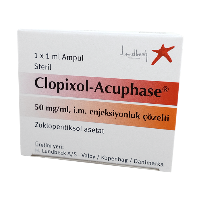 Однократная инъекция зуклопентиксола ацетата обеспечивает явное и быстрое уменьшение психотических симптомов. Продолжительность действия составляет 2-3 дня, и обычно достаточно одной или двух инъекций прежде чем пациентов можно переводить на препарат для приема внутрь или на препарат в форме депо.