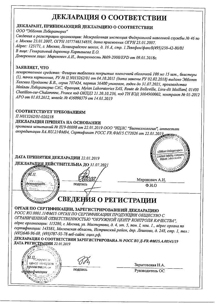 Показания препарата Феварин