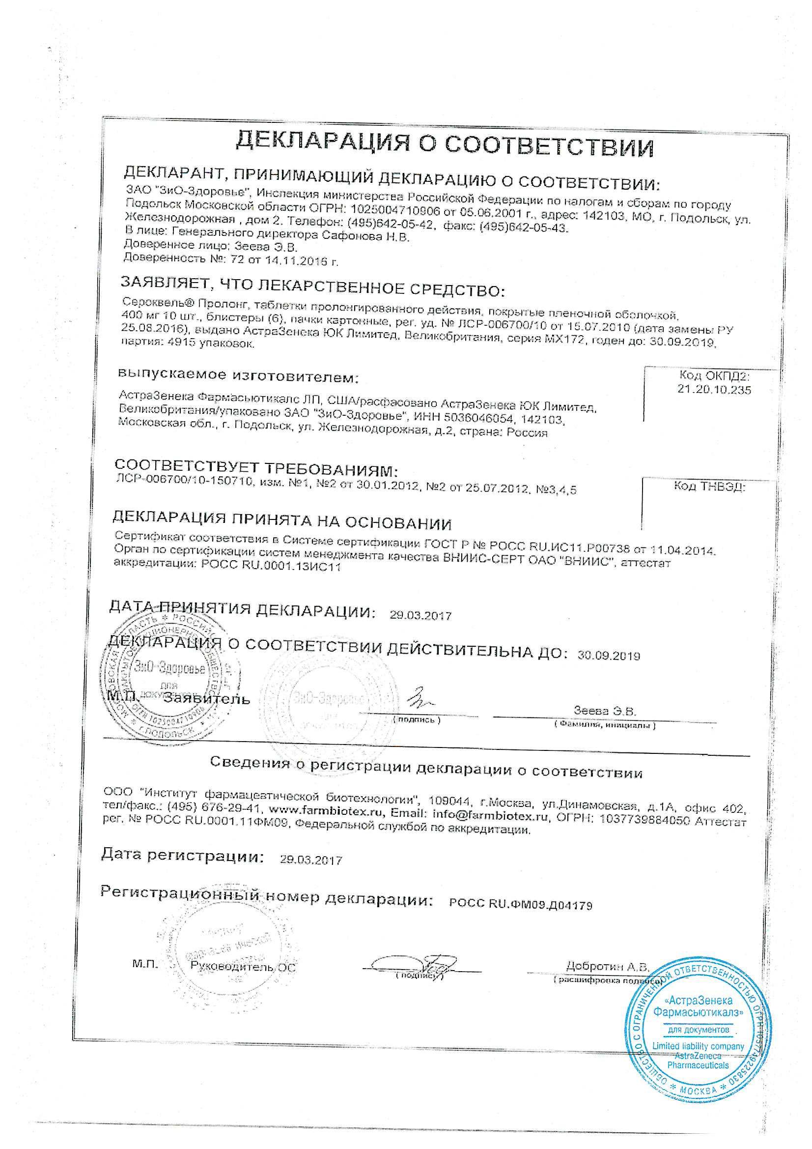 Перевод с приема препарата Сероквель на прием препарата Сероквель Пролонг