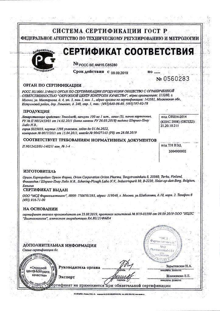 Особые указания. Женщинам детородного возраста, а также мужчинам во время лечения Темодалом и в течение 6 мес после его окончания необходимо использовать эффективные противозачаточные средства.