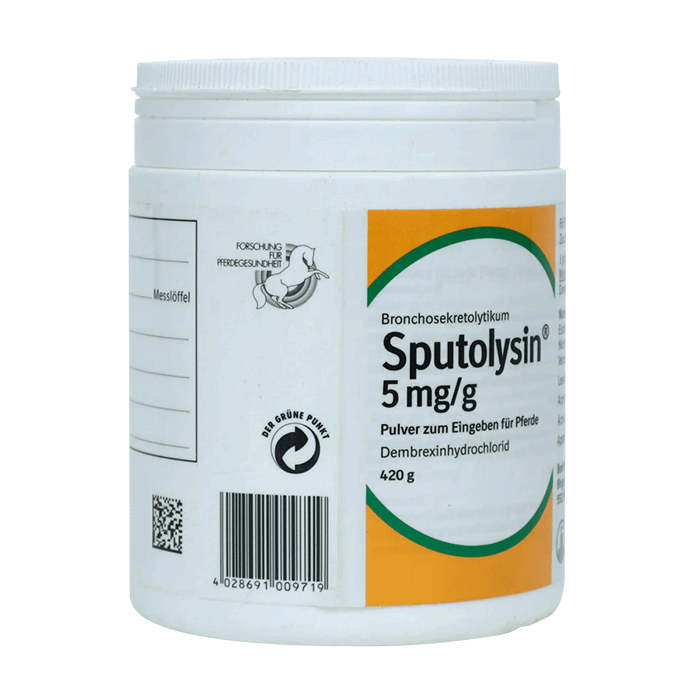 Показания. Спутолизин (Дембрексин) способствует активной выработке легочного сурфактанта и фрагментации волокон мокроты. Имеет высокую эффективность и при этом не дает побочных эффектов. Противопоказаний не имеется, безопасен для животных любого возраста. Может применяться при лечении беременных и кормящих кобылиц.
