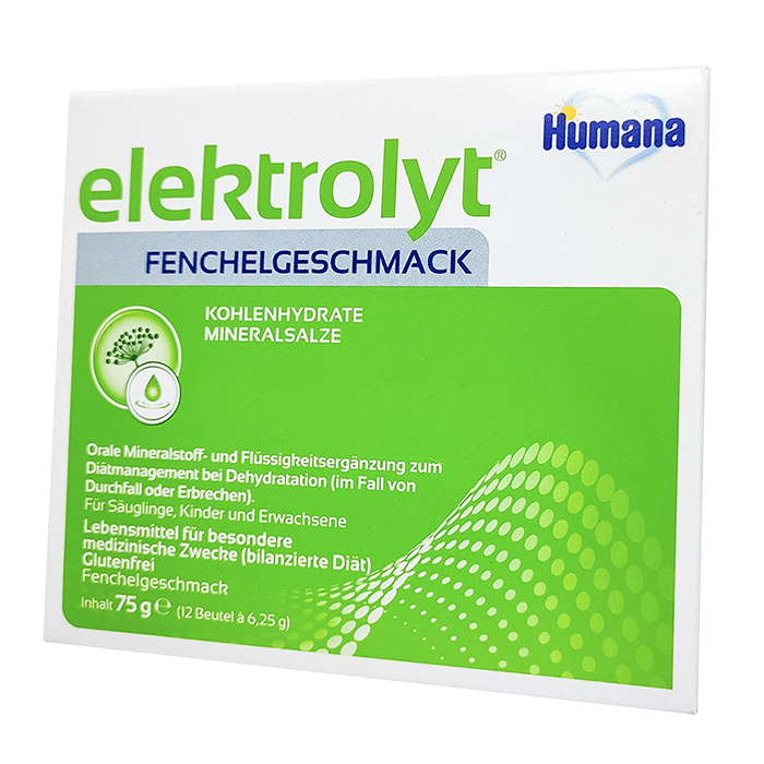 Хумана Электролит со вкусом фенхеля – это гипоосмолярная смесь минеральных веществ и легкоусвояемых углеводов для приготовления раствора для оральной регидратации при диарее, рвоте и состояниях, при которых наблюдаются данные симптомы.